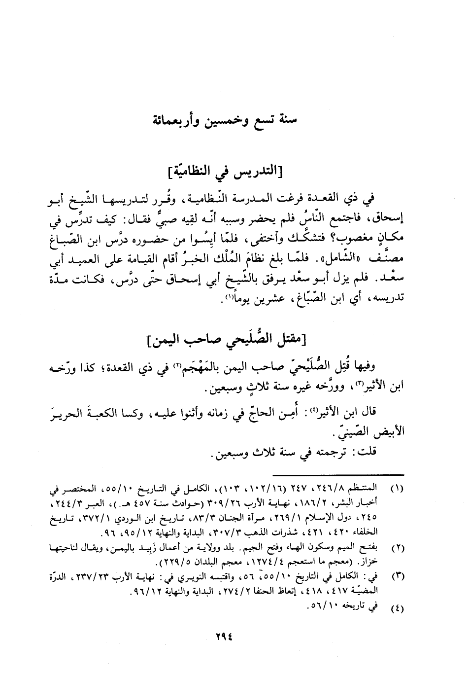 [1] المنتظم 8/ 246، 247 (16/ 102، 103) ، الكامل في التاريخ 10/ 55، المختصر في أخبار البشر، 2/ 186، نهاية الأرب 26/ 309 (حوادث سنة 457 هـ.) ، العبر 3/ 244، 245، دول الإسلام 1/ 269، مرآة الجنان 3/ 83، تاريخ ابن الوردي 1/ 372، تاريخ الخلفاء 420، 421، شذرات الذهب 3/ 307، البداية والنهاية 12/ 95، 96.