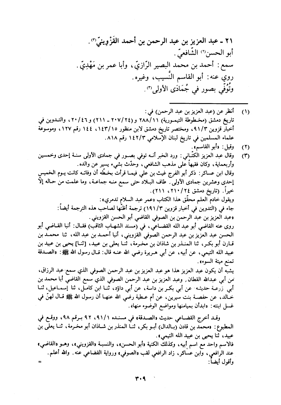 21- عبد العزيز بن عبد الرَّحمن بن أَحْمَد القَزْوِينيّ [1] .