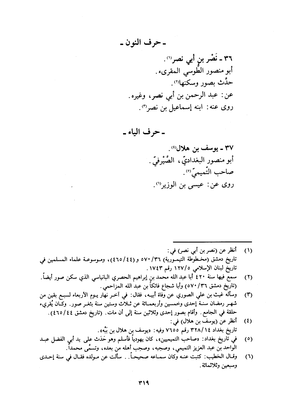 تاريخ دمشق (مخطوطة التيمورية) 36/ 570 و (44/ 465) ، وموسوعة علماء المسلمين في تاريخ لبنان الإسلامي 5/ 127 رقم 1743.