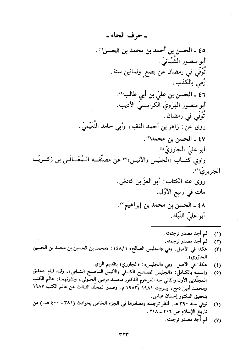 [6] توفي سنة 390 هـ. انظر ترجمته ومصادرها في الجزء الخاص بحوادث (381- 400 هـ.) من تاريخ الإسلام ص 206- 208.