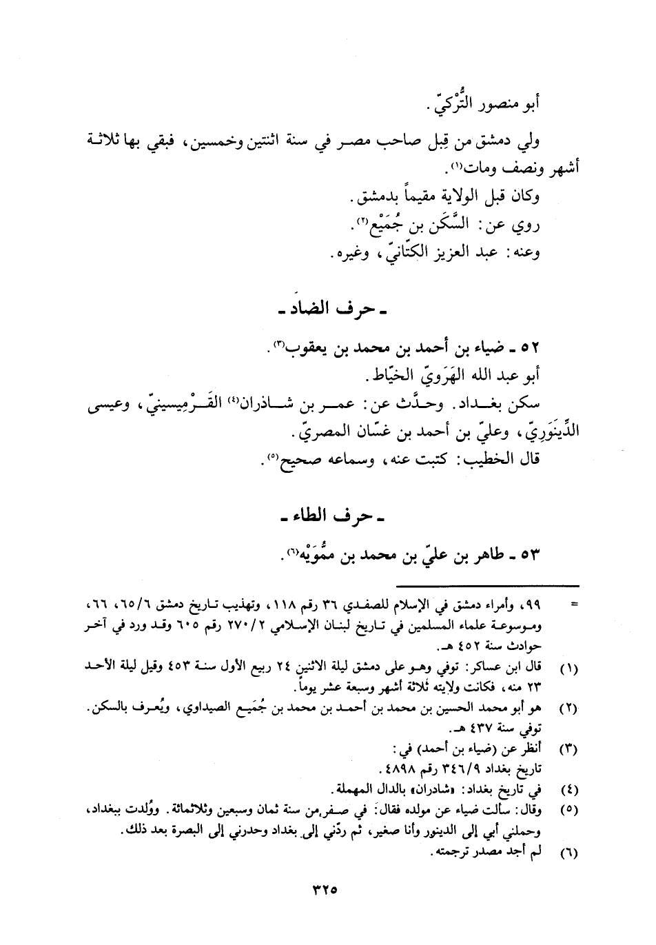 [ (- 99،) ] وأمراء دمشق في الإسلام للصفدي 36 رقم 118، وتهذيب تاريخ دمشق 6/ 65، 66، وموسوعة علماء المسلمين في تاريخ لبنان الإسلامي 2/ 270 رقم 605 وقد ورد في آخر حوادث سنة 452 هـ.