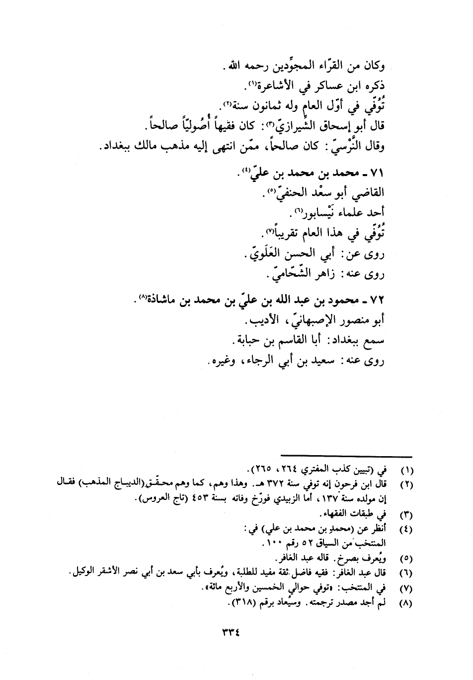 [7] في المنتخب: «توفي حوالي الخمسين والأربع مائة» .