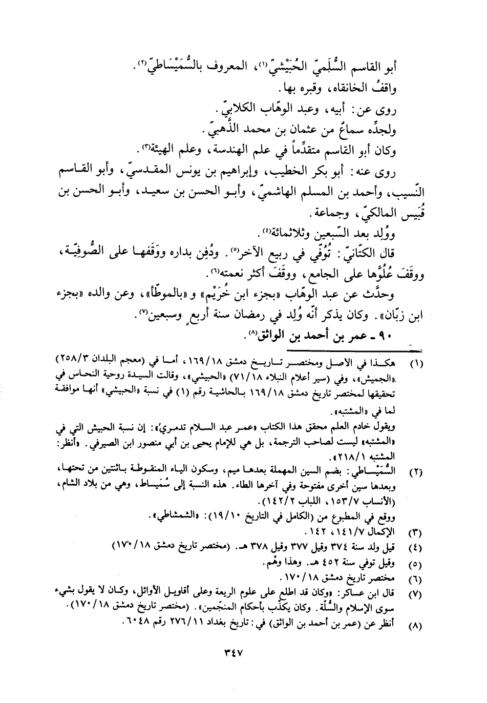 [8] انظر عن (عمر بن أحمد بن الواثق) في: تاريخ بغداد 11/ 276 رقم 6048.