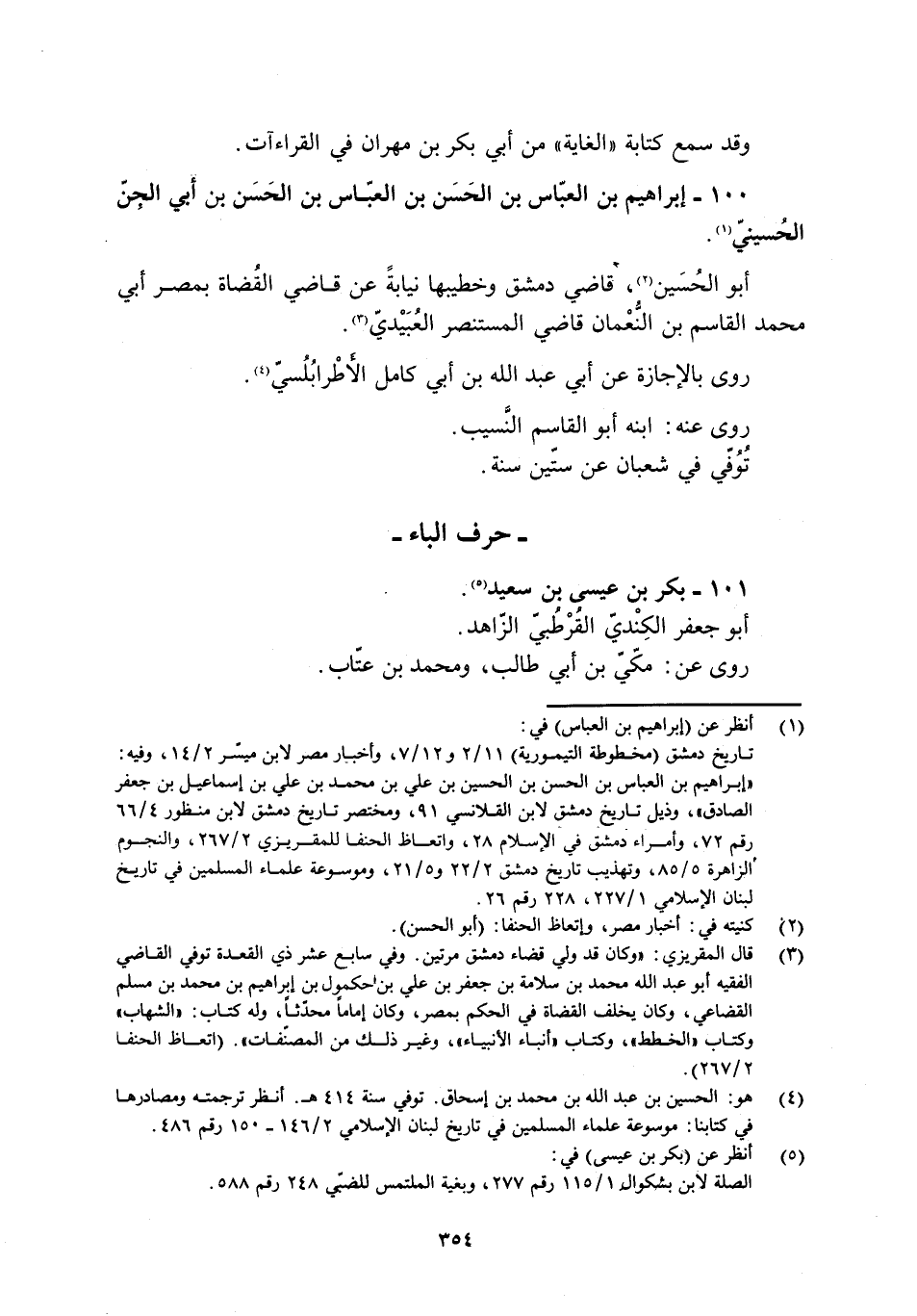 [4] هو: الحسين بن عبد الله بن محمد بن إسحاق. توفي سنة 414 هـ. انظر ترجمته ومصادرها في كتابنا: موسوعة علماء المسلمين في تاريخ لبنان الإسلامي 2/ 146- 150 رقم 486.