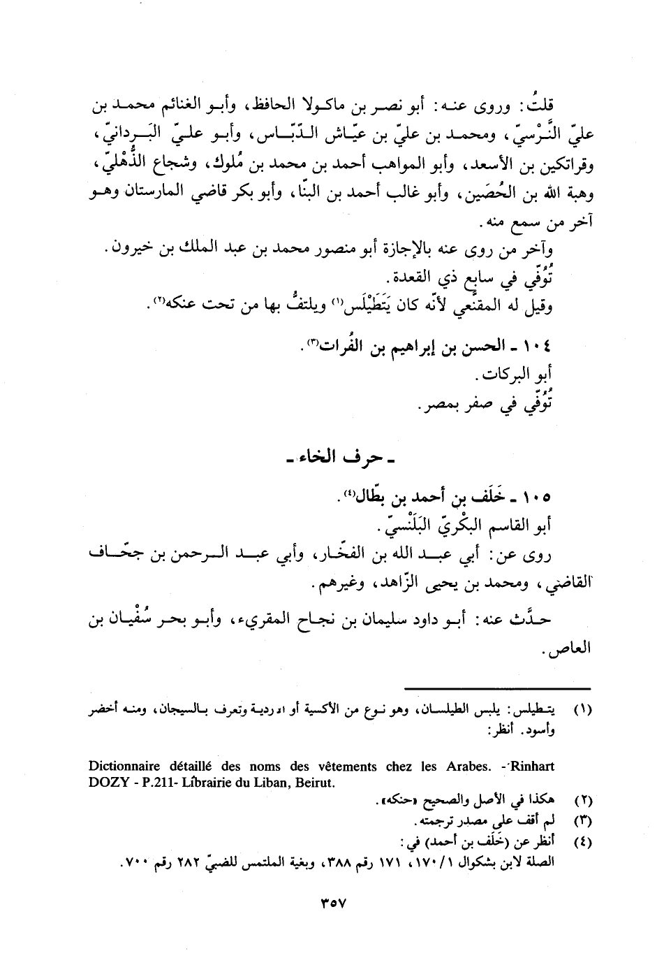 Dozy -p.211 -LibrairieduLiban ,Beirut.ntschezlesArabes. -Rinhart