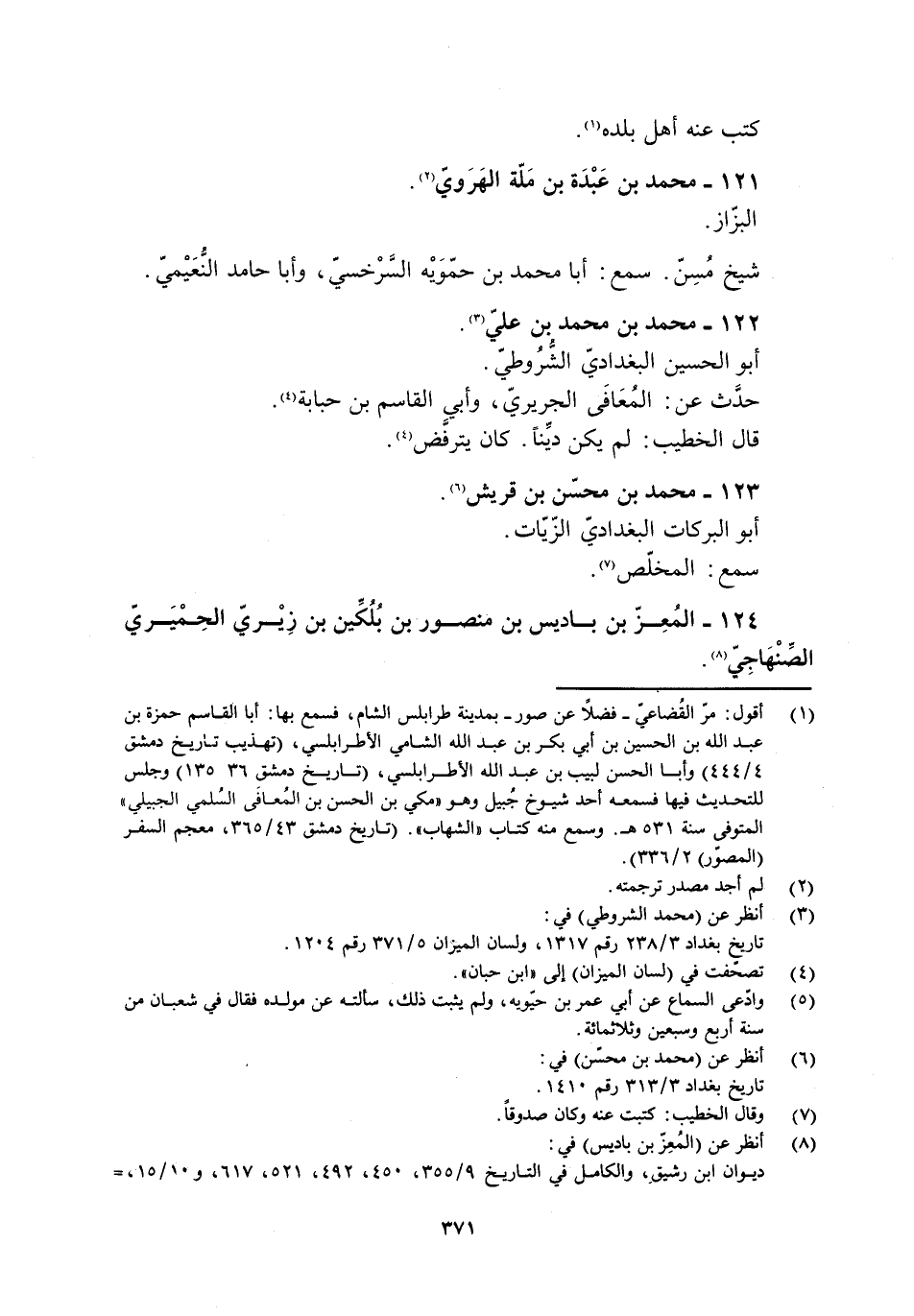 124- المُعِزّ بن باديس بن منصور بن بلكّين بن زيريّ الحميريّ الصّنهاجيّ [8] .