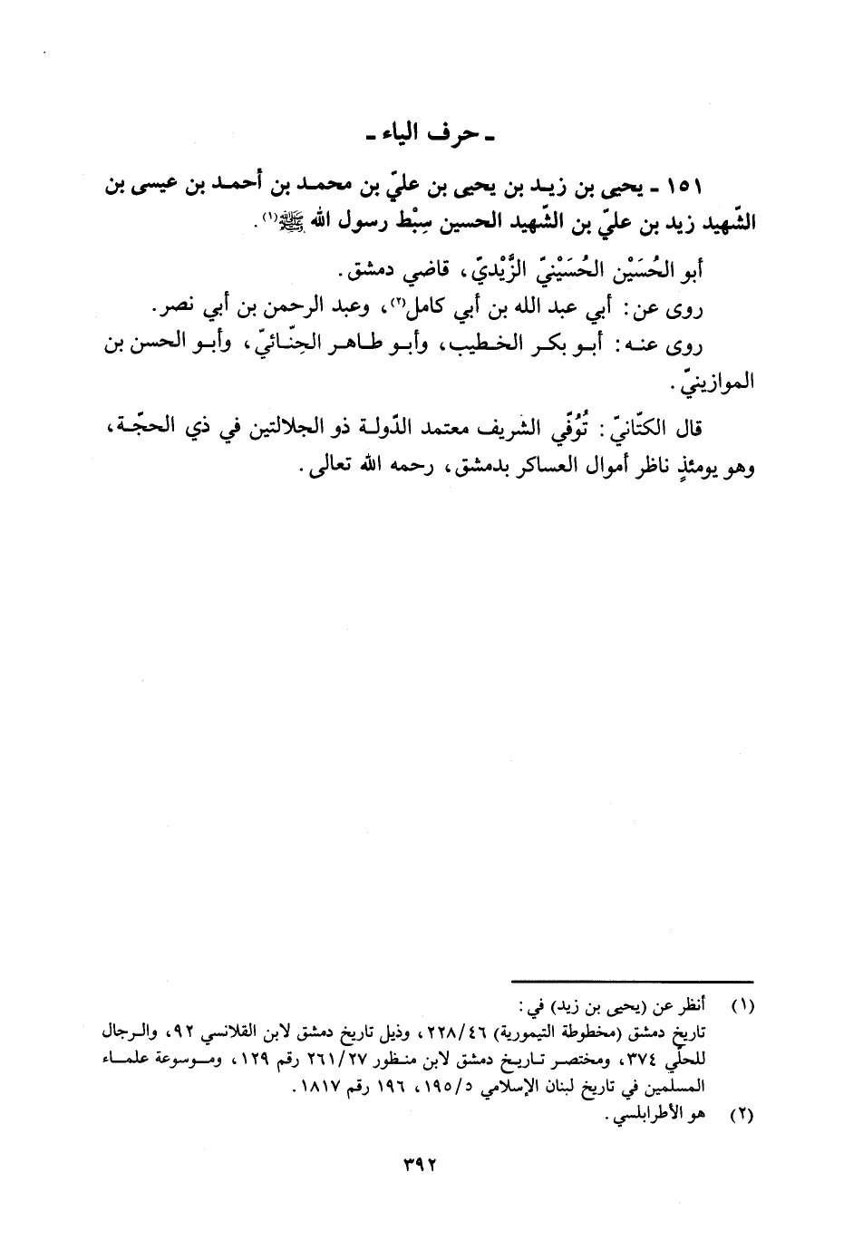 151- يحيى بن زيد بن يحيى بن علي بن محمد بن أحمد بن عيسى بن الشّهيد زيد بن عليّ بن الشّهيد الحسين سِبط رَسُولِ اللَّهِ صَلَّى اللَّهُ عَلَيْهِ وَسَلَّمَ [1] .