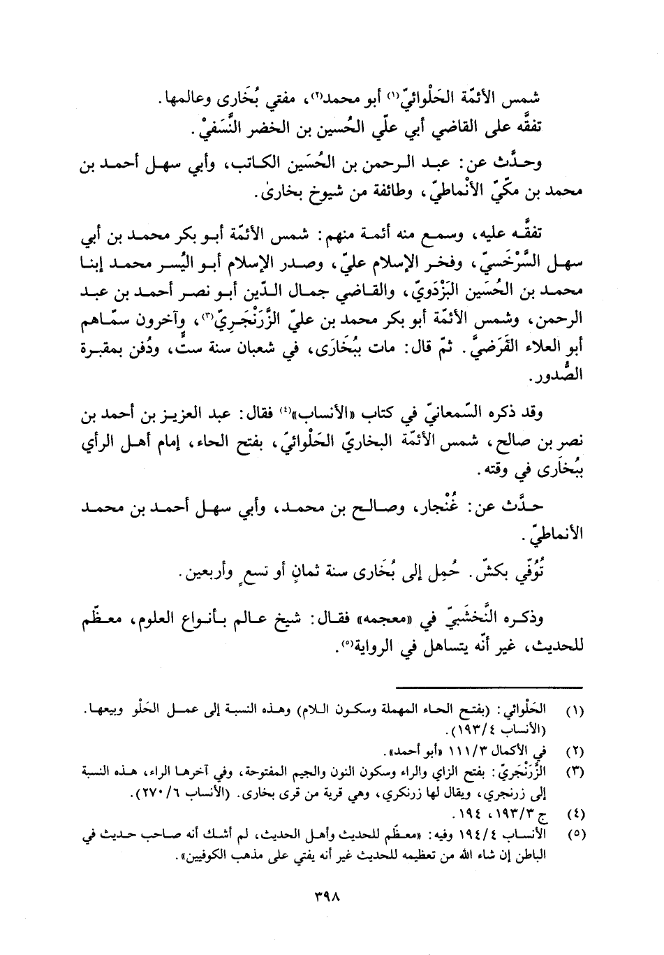 وقد ذكره السّمعانيّ في كتاب «الأنساب» [4] فقال: عبد العزيز بن أَحْمَد بن نصر بن صالح، شمس الأئمّة البخاريّ الحَلْوائيّ، بفتح الحاء، إمام أهل الرأي ببخارى في وقته.