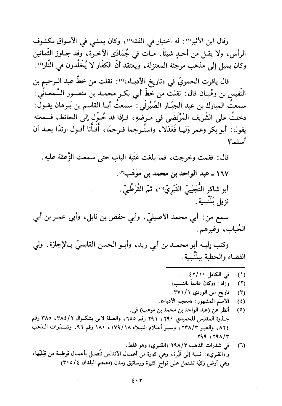 [5] انظر عن (عبد الواحد بن محمد بن موهب) في: