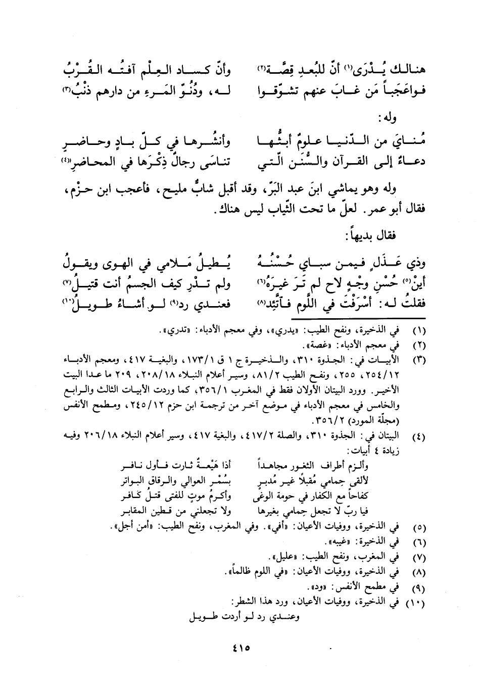 [3] الأبيات في: الجذوة 310، والذخيرة ج 1 ق 1/ 173، والبغية 417، ومعجم الأدباء 12/ 254، 255، ونفح الطيب 2/ 81، وسير أعلام النبلاء 18/ 208، 209 ما عدا البيت الأخير. وورد البيتان الأولان فقط في المغرب 1/ 356، كما وردت الأبيات الثالث والرابع والخامس في معجم الأدباء في موضع آخر من ترجمة ابن حزم 12/ 245، ومطمح الأنفس (مجلّة المورد) 2/ 356.