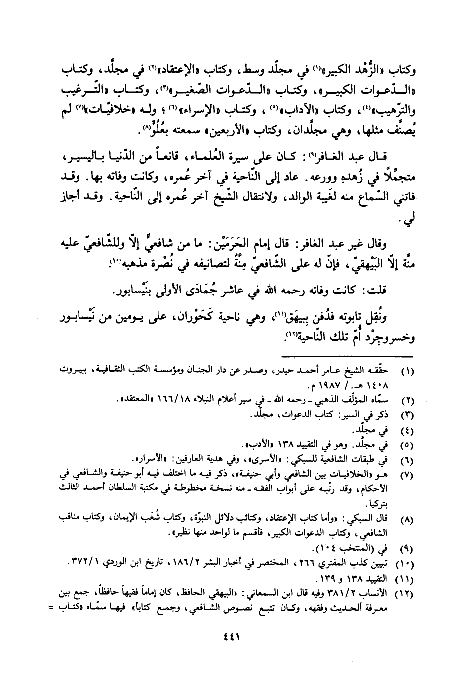 [12] الأنساب 2/ 381 وفيه قال ابن السمعاني: «البيهقي الحافظ، كان إماما فقيها حافظا، جمع بين معرفة الحديث وفقهه، وكان تتبع نصوص الشافعيّ، وجمع كتابا» فيها سمّاه «كتاب-