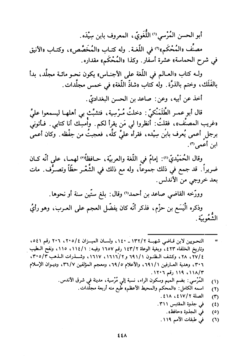 [2] اسمه الكامل: «المحكم والمحيط الأعظم» طبع منه أربعة مجلّدات.