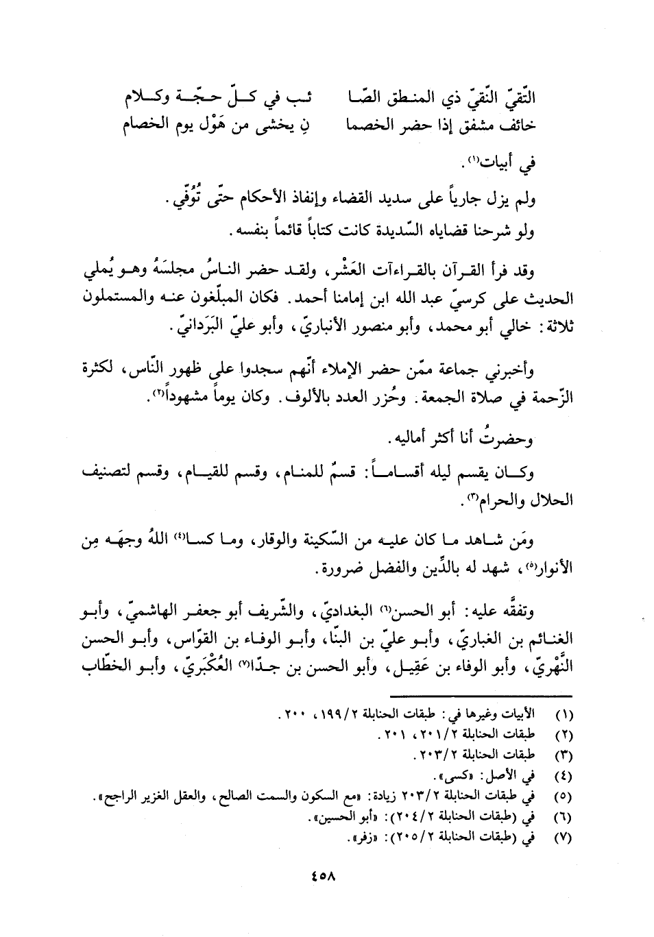 [5] في طبقات الحنابلة 2/ 203 زيادة: «مع السكون والسمت الصالح، والعقل الغزير الراجح» .