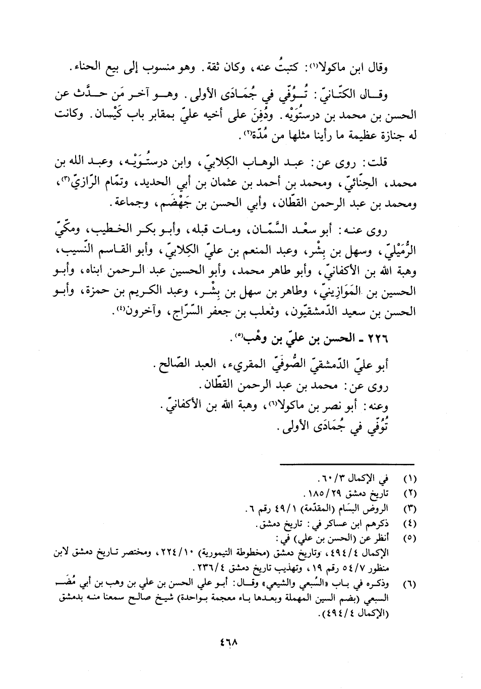 [6] وذكره في باب «السبعي والشيعي» وقال: أبو علي الحسن بن علي بن وهب بن أبي مضر السبعي (بضم السين المهملة وبعدها باء معجمة بواحدة) شيخ صالح سمعنا منه بدمشق (الإكمال 4/ 494) .