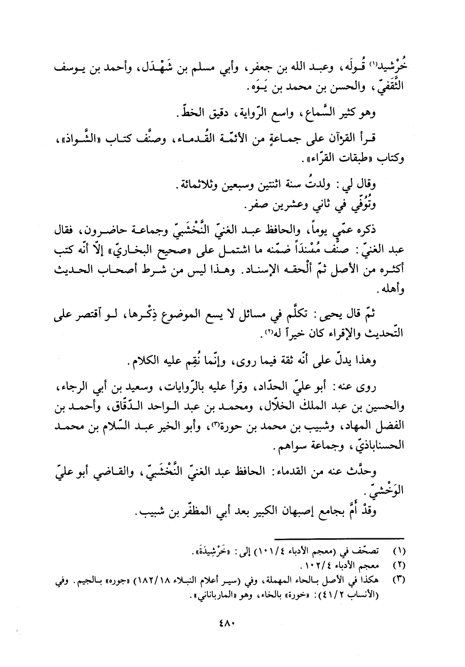 [3] هكذا في الأصل بالحاء المهملة، وفي (سير أعلام النبلاء 18/ 182) «جوره» بالجيم. وفي (الأنساب 2/ 41) : «خورة» بالخاء، وهو «المارباناني» .