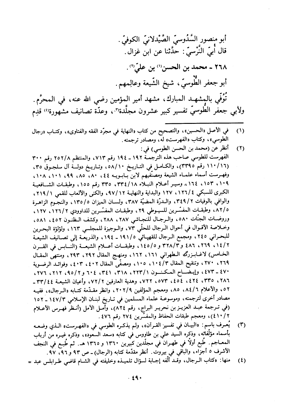 [2] انظر عن (محمد بن الحسن الطوسي) في: