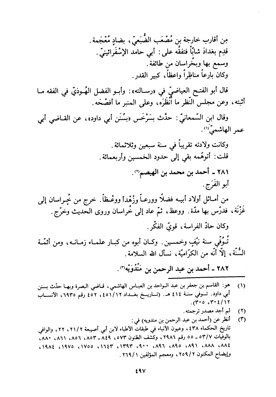 [3] انظر عن (أحمد بن عبد الرحمن بن مندويه) في: