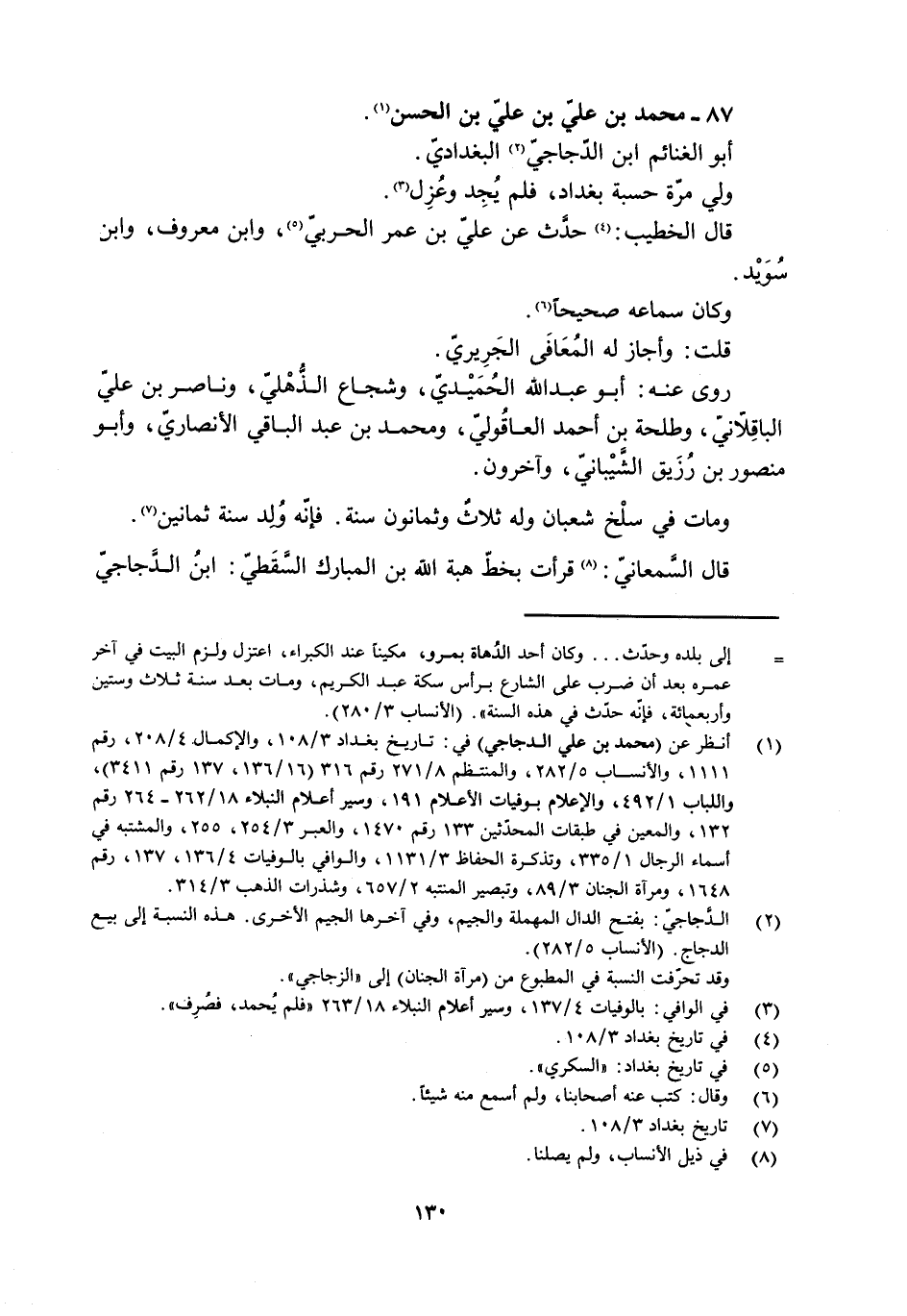 [2] الدّجاجيّ: بفتح الدال المهملة والجيم، وفي آخرها الجيم الأخرى. هذه النسبة إلى بيع الدجاج. (الأنساب 5/ 282) .