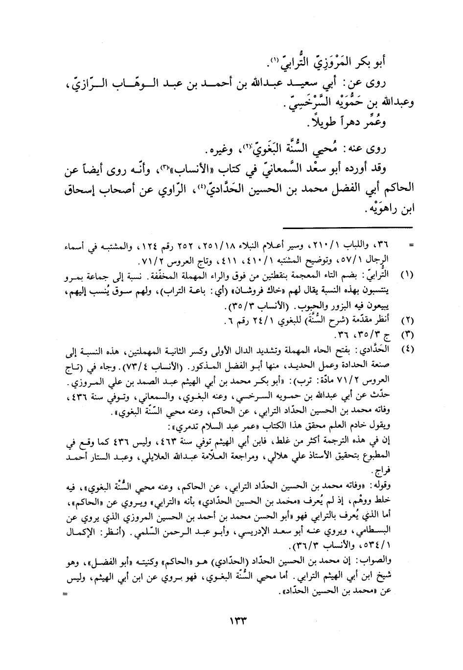 [ (- 36،) ] واللباب 1/ 210، وسير أعلام النبلاء 18/ 251، 252 رقم 124، والمشتبه في أسماء الرجال 1/ 57، وتوضيح المشتبه 1/ 410، 411، وتاج العروس 2/ 71.