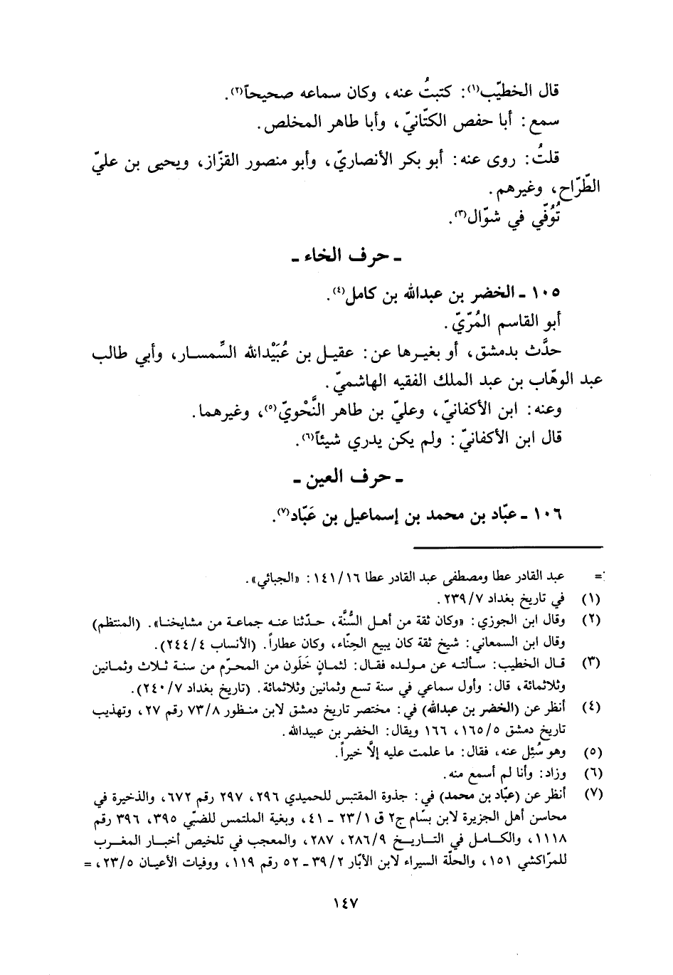 [4] انظر عن (الخضر بن عبد الله) في: مختصر تاريخ دمشق لابن منظور 8/ 73 رقم 27، وتهذيب تاريخ دمشق 5/ 165، 166 ويقال: الخضر بن عبيد الله.