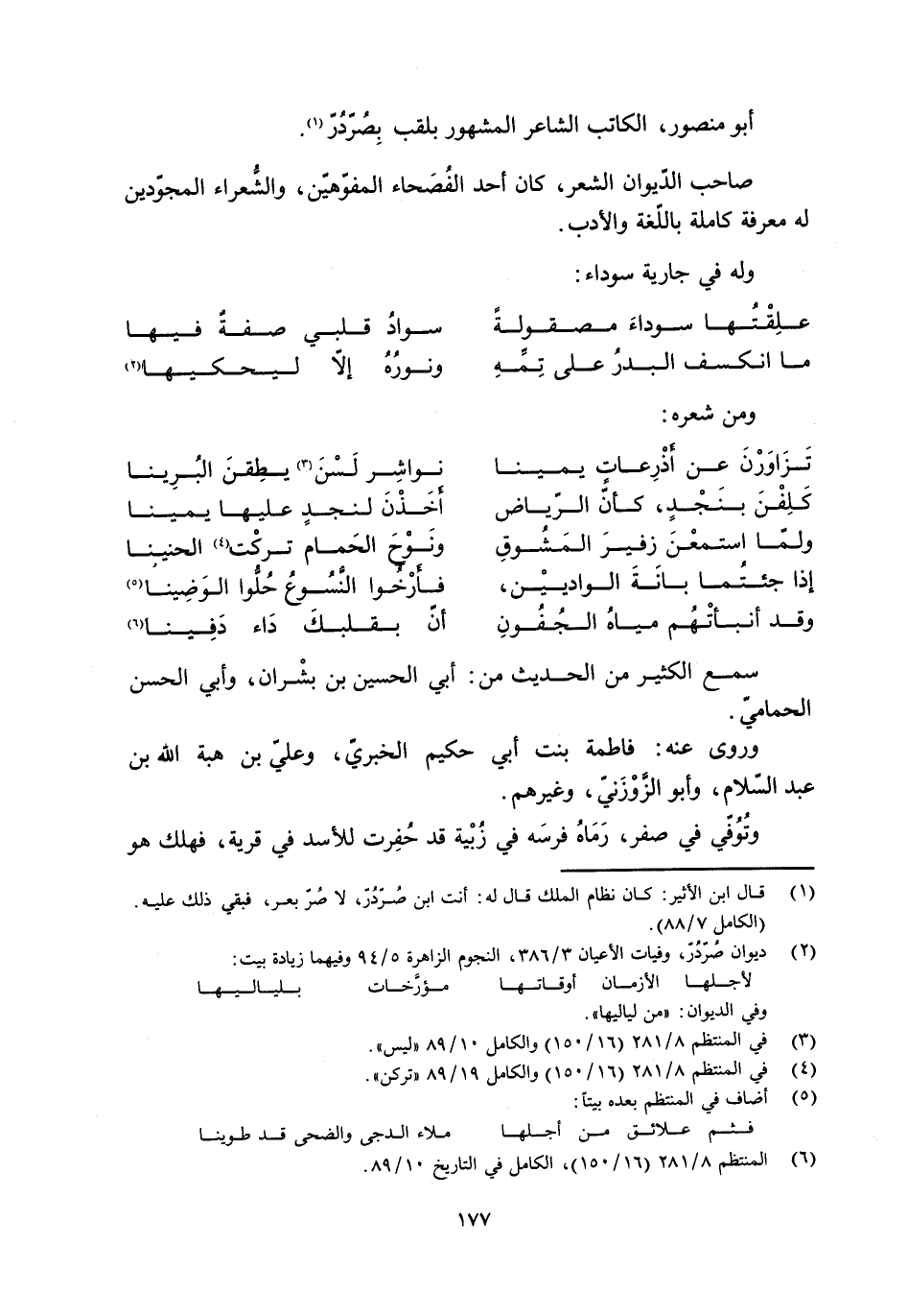 [2] ديوان صردرّ، وفيات الأعيان 3/ 386، النجوم الزاهرة 5/ 94 وفيهما زيادة بيت: