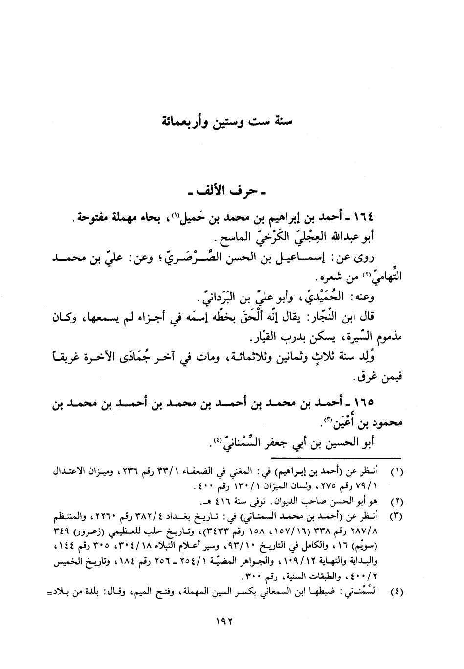 [3] انظر عن (أحمد بن محمد السمناني) في: تاريخ بغداد 4/ 382 رقم 2260، والمنتظم 8/ 287 رقم 338 (16/ 157، 158 رقم 3433) ، وتاريخ حلب للعظيميّ (زعرور) 349 (سويّم) 16، والكامل في التاريخ 10/ 93، وسير أعلام النبلاء 18/ 304، 305 رقم 144، والبداية والنهاية 12/ 109، والجواهر المضيّة 1/ 254- 256 رقم 184، وتاريخ الخميس 2/ 400، والطبقات السنية، رقم 300.