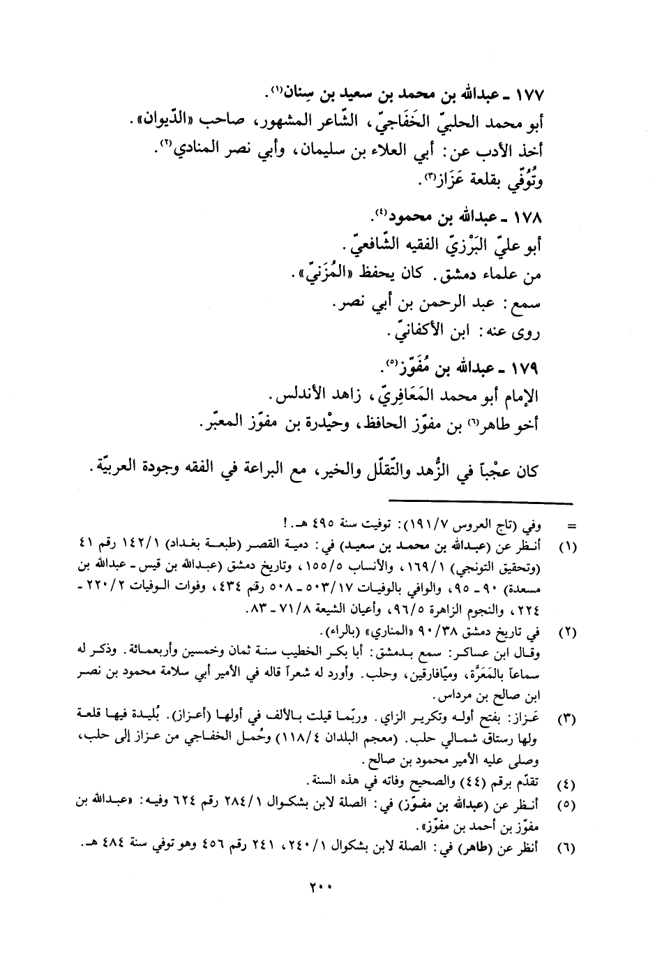 [1] انظر عن (عَبْد الله بن مُحَمَّد بن سَعِيد) فِي: دمية القصر (طبعة بغداد) 1/ 142 رقم 41 (وتحقيق التونجي) 1/ 169، والأنساب 5/ 155، وتاريخ دمشق (عبد الله بن قيس- عبد الله بن مسعدة) 90- 95، والوافي بالوفيات 17/ 503- 508 رقم 434، وفوات الوفيات 2/ 220- 224، والنجوم الزاهرة 5/ 96، وأعيان الشيعة 8/ 71- 83.