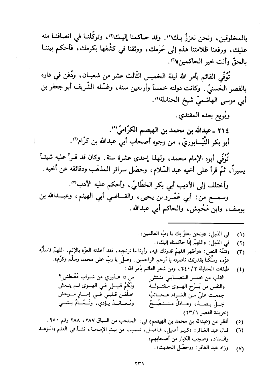 [4] طبقات الحنابلة 2/ 240، ومن شعر القائم بأمر الله:
