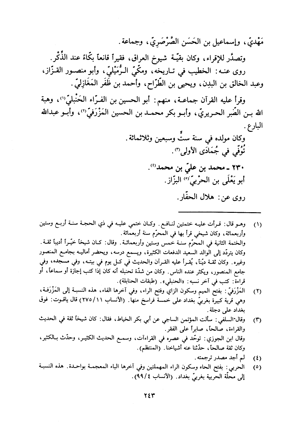 [5] الحربي: بفتح الحاء وسكون الراء المهملتين وفي آخرها الباء المعجمة بواحدة. هذه النسبة إلى محلّة الحربية بغربيّ بغداد. (الأنساب 4/ 99) .