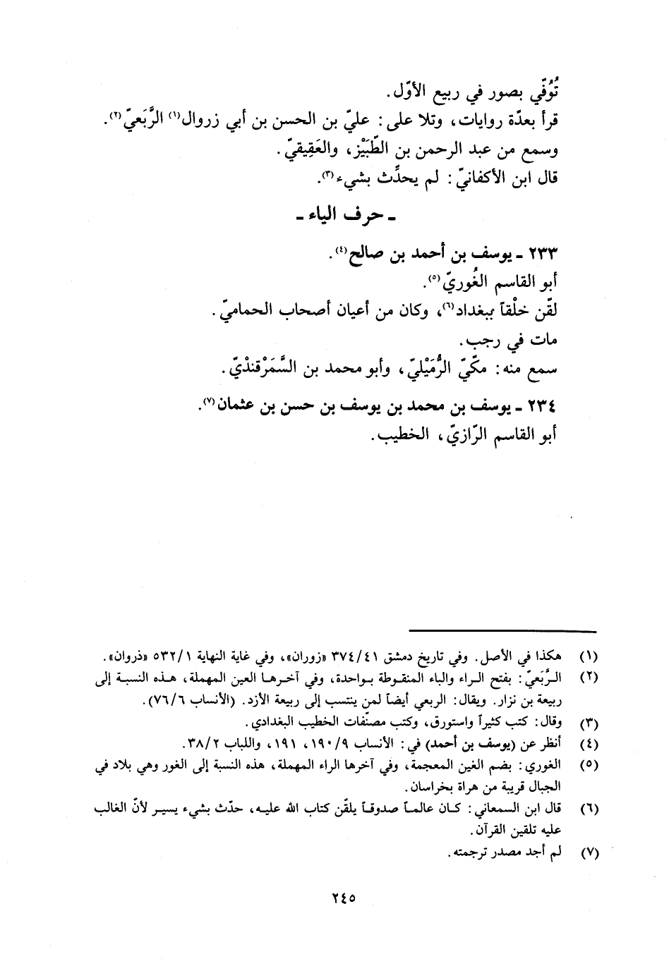 [4] انظر عن (يوسف بن أحمد) في: الأنساب 9/ 190، 191، واللباب 2/ 38.
