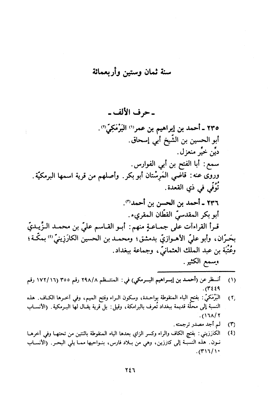 [1] انظر عن (أحمد بن إبراهيم البرمكي) في: المنتظم 8/ 298 رقم 355 (16/ 172 رقم 3449) .