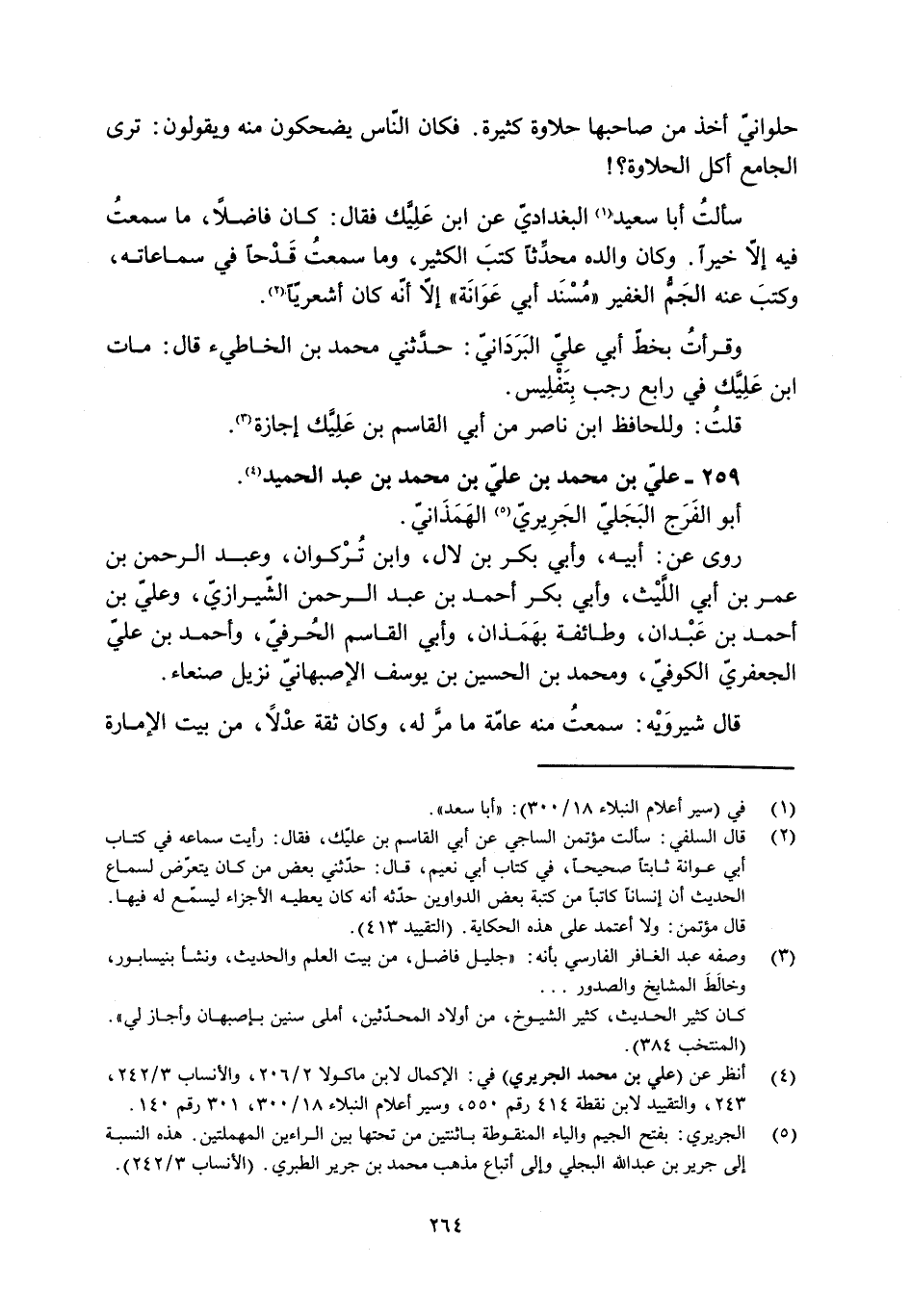 [5] الجريريّ: بفتح الجيم والياء المنقوطة باثنتين من تحتها بين الراءين المهملتين. هذه النسبة إلى جرير بن عبد الله البجلي وإلى أتباع مذهب محمد بن جرير الطبري. (الأنساب 3/ 242) .