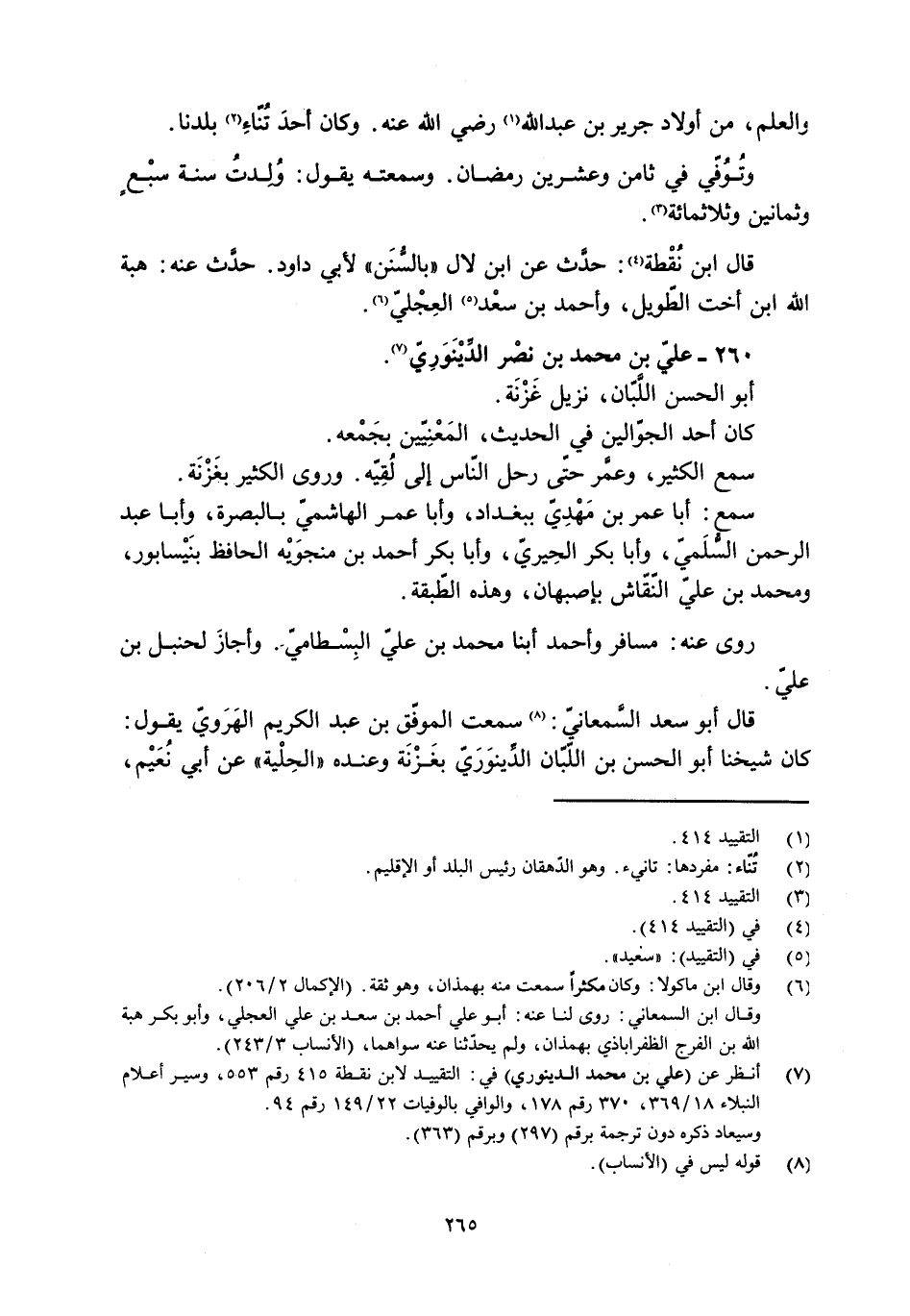 [7] انظر عن (علي بن محمد الدينَوَريّ) في: التقييد لابن نقطة 415 رقم 553، وسير أعلام النبلاء 18/ 369، 370 رقم 178، والوافي بالوفيات 22/ 149 رقم 94.