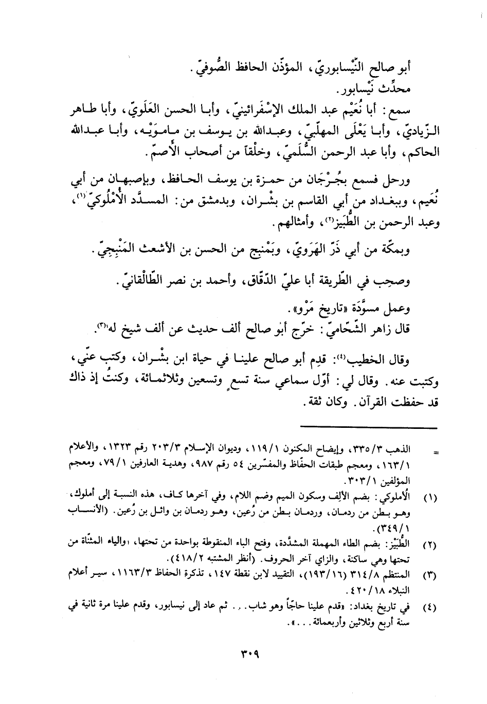 [3] المنتظم 8/ 314 (16/ 193) ، التقييد لابن نقطة 147، تذكرة الحفاظ 3/ 1163، سير أعلام النبلاء 18/ 420.