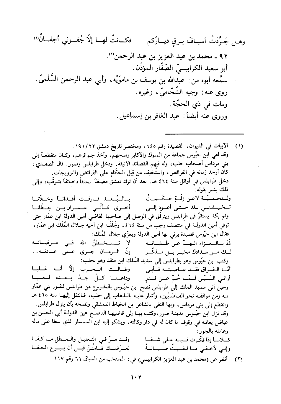 [2] انظر عن (محمد بن عبد العزيز الكرابيسي) في: المنتخب من السياق 61 رقم 117.