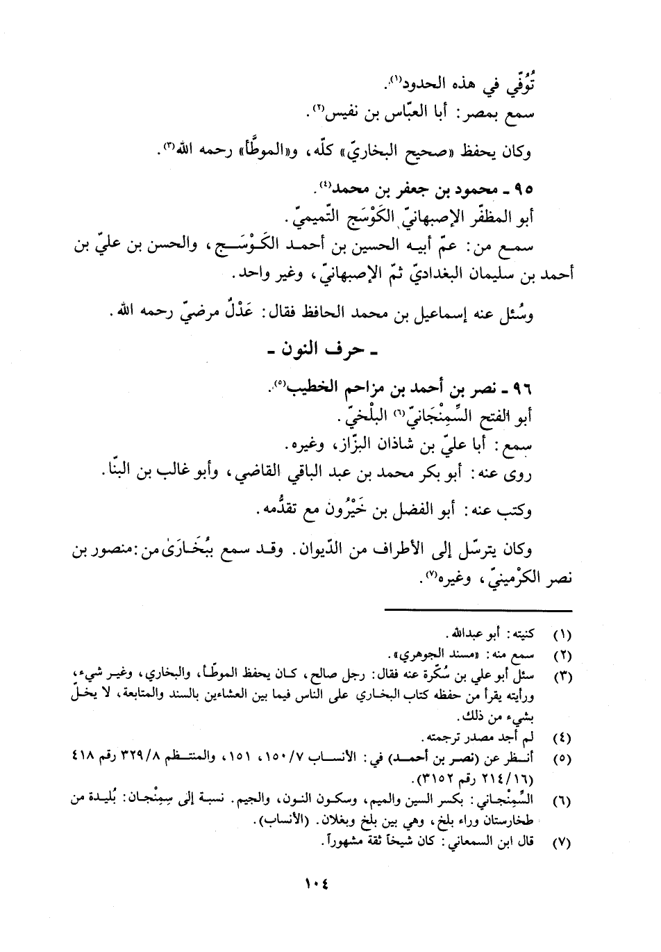 [6] السمنجاني: بكسر السين والميم، وسكون النون، والجيم. نسبة إلى سمنجان: بليدة من طخارستان وراء بلخ، وهي بين بلخ وبغلان. (الأنساب) .