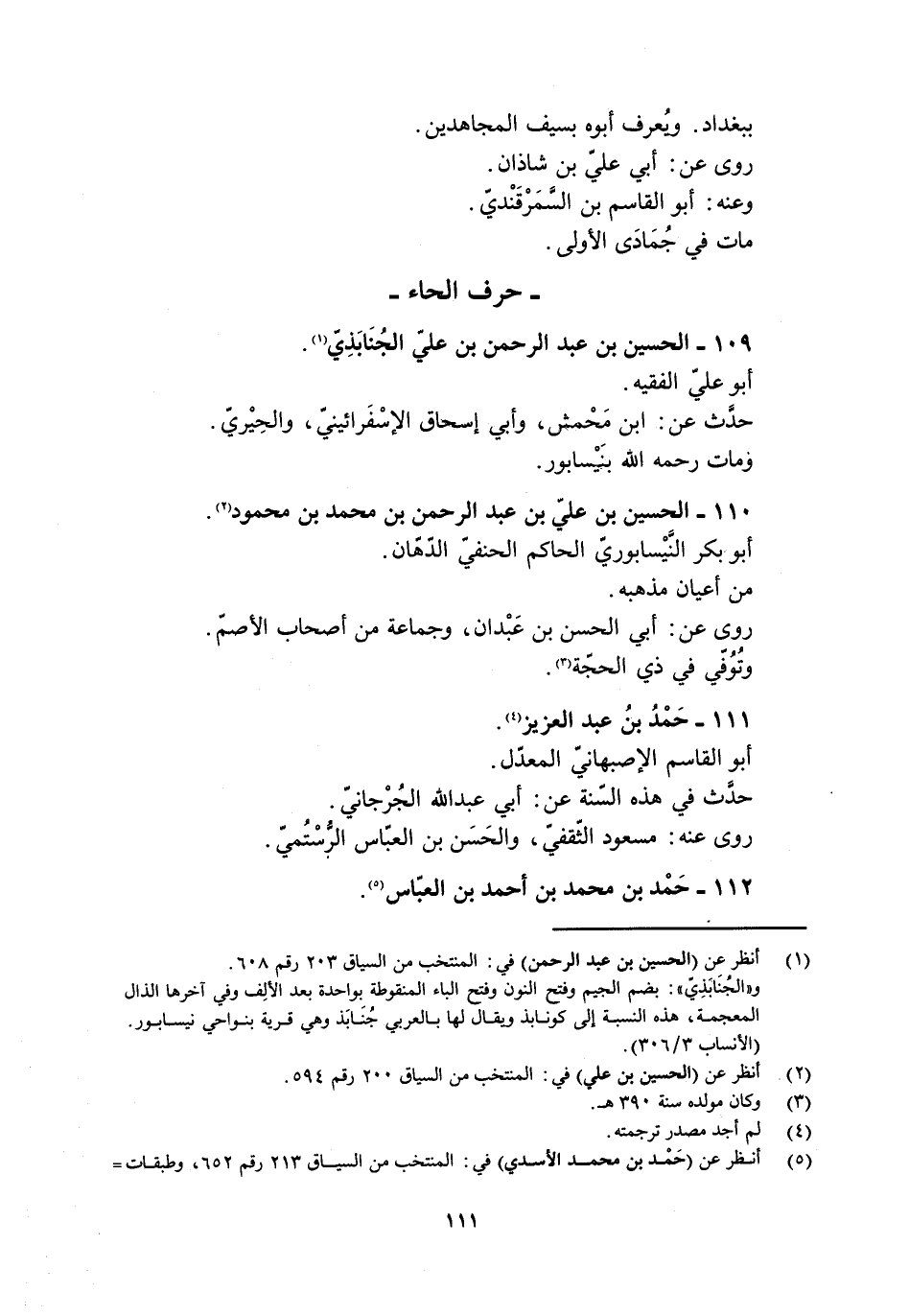 [1] انظر عن (الحسين بن عبد الرحمن) في: المنتخب من السياق 203 رقم 608.