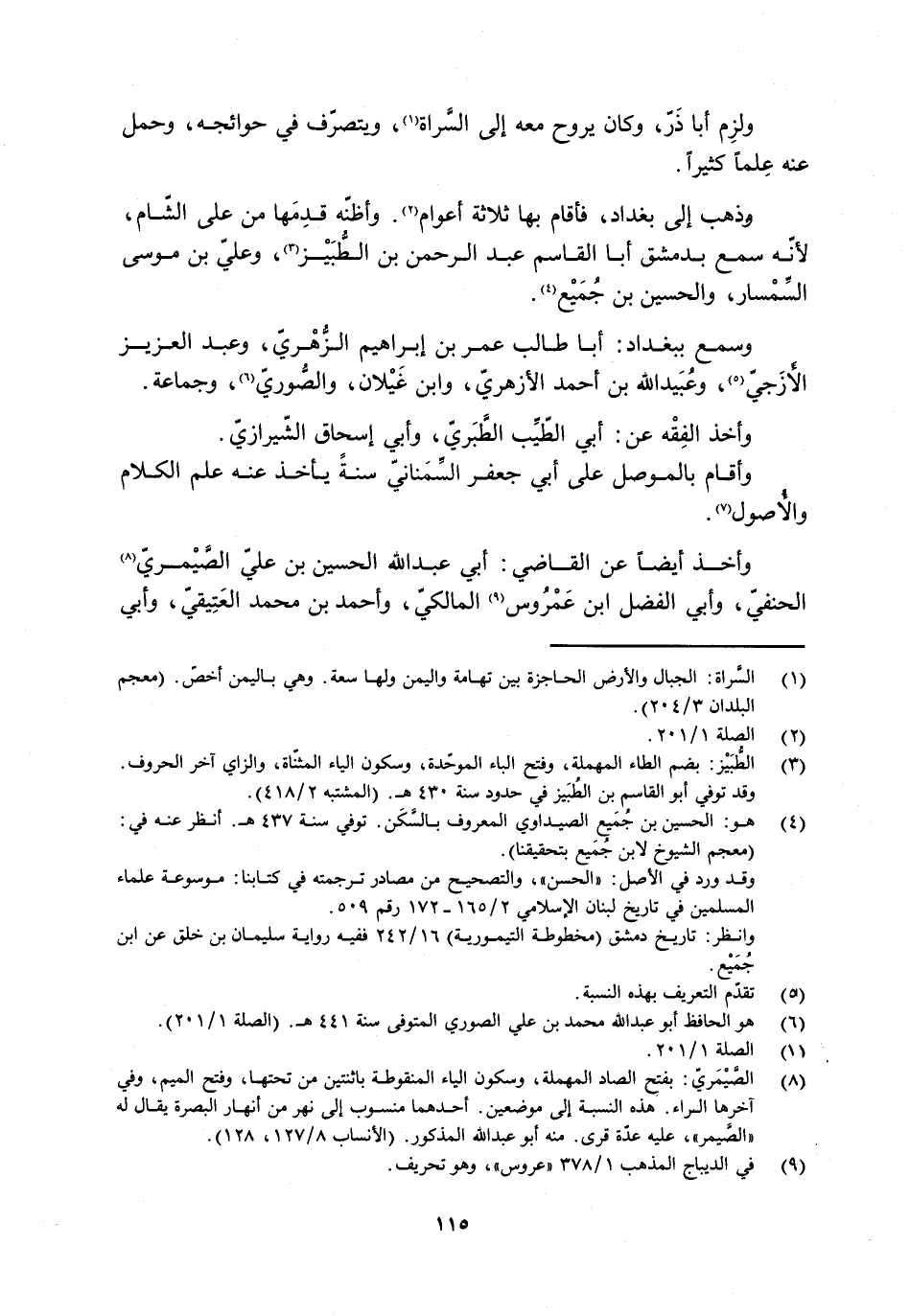 [8] الصيمريّ: بفتح الصاد المهملة، وسكون الياء المنقوطة باثنتين من تحتها، وفتح الميم، وفي آخرها الراء. هذه النسبة إلى موضعين. أحدهما منسوب إلى نهر من أنهار البصرة يقال له «الصيمر» ، عليه عدّة قرى. منه أبو عبد الله المذكور. (الأنساب 8/ 127، 128) .