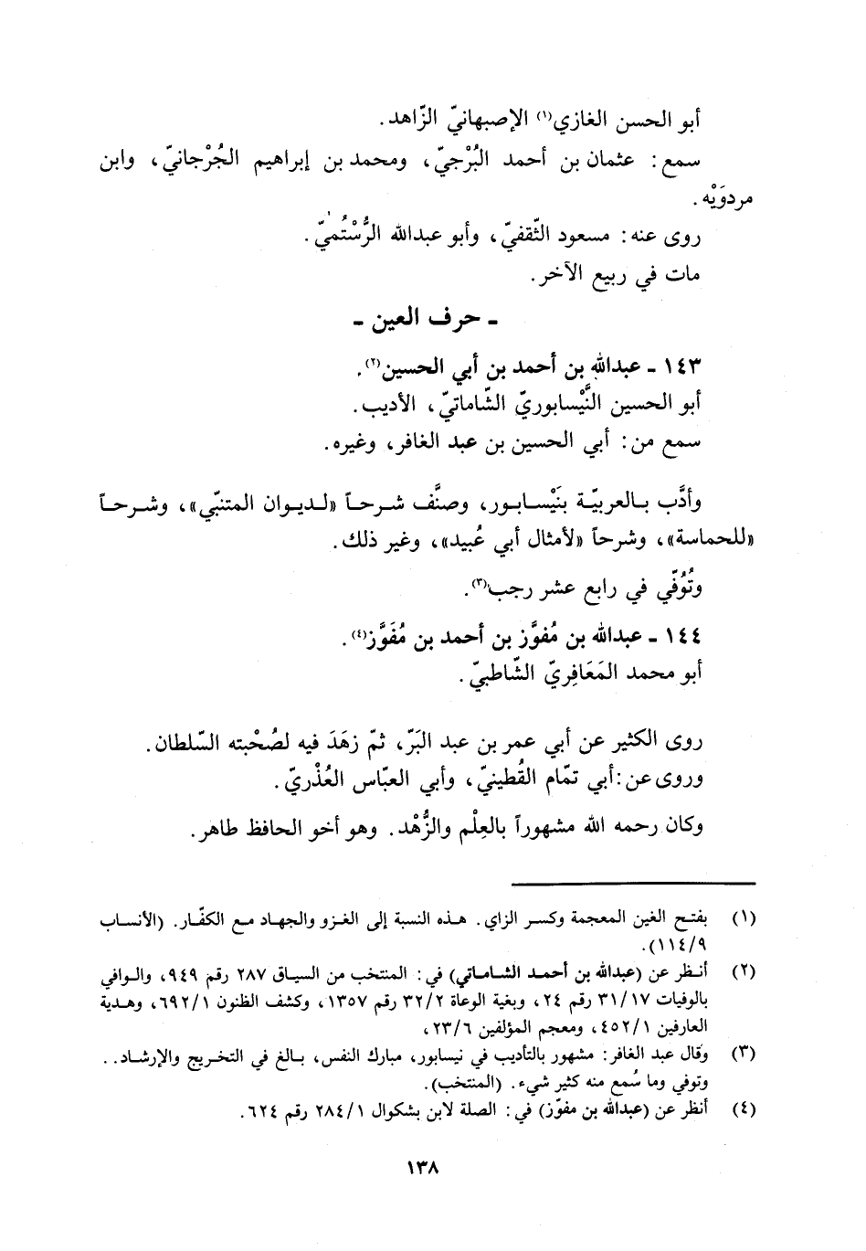 [2] انظر عن (عبد الله بن أحمد الشاماتي) في: المنتخب من السياق 287 رقم 949، والوافي بالوفيات 17/ 31 رقم 24، وبغية الوعاة 2/ 32 رقم 1357، وكشف الظنون 1/ 692، وهدية العارفين 1/ 452، ومعجم المؤلفين 6/ 23.