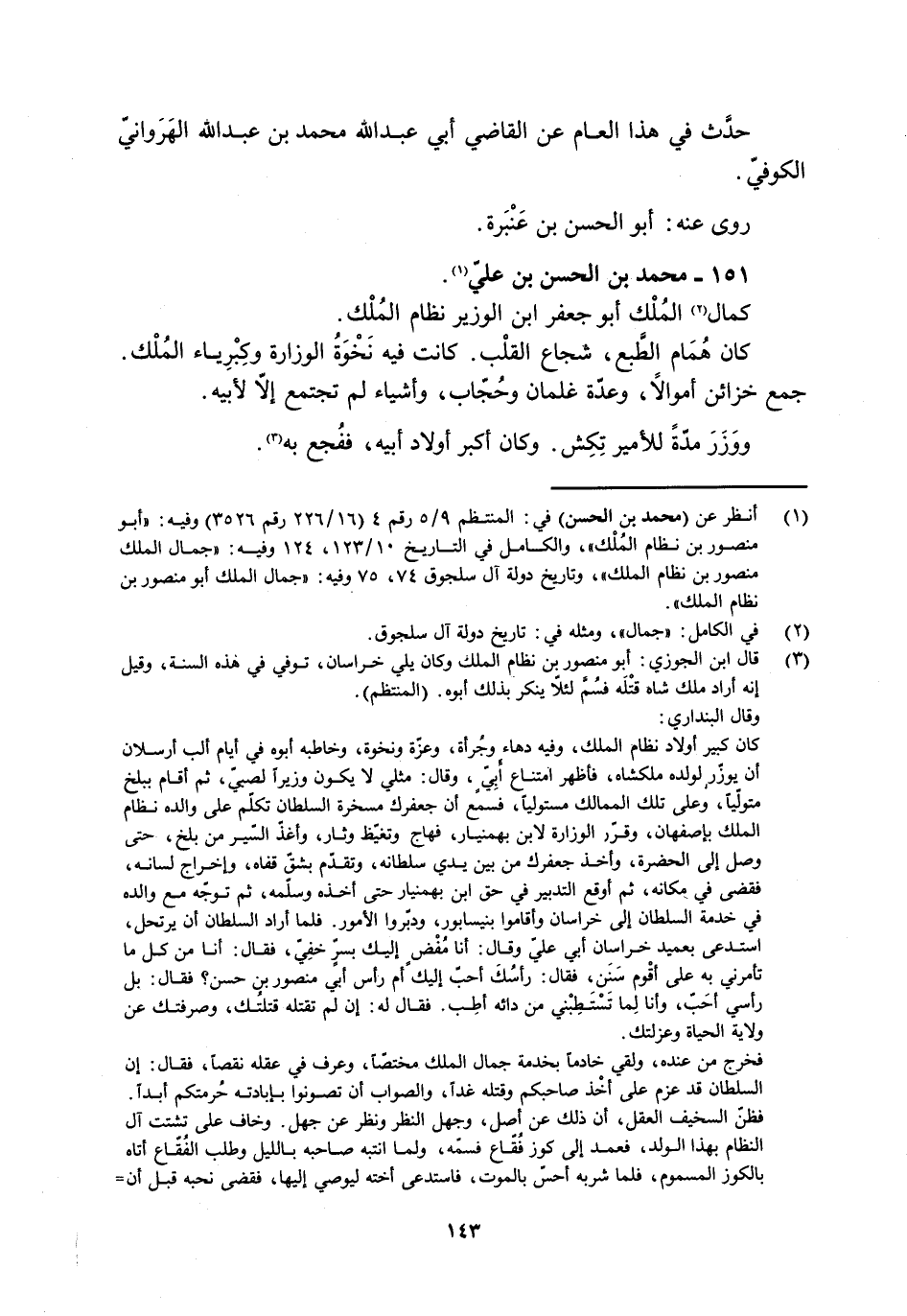 [1] انظر عن (محمد بن الحسن) في: المنتظم 9/ 5 رقم 4 (16/ 226 رقم 3526) وفيه: «أبو منصور بن نظام الملك» ، والكامل في التاريخ 10/ 123، 124 وفيه: «جمال الملك منصور بن نظام الملك» ، وتاريخ دولة آل سلجوق 74، 75 وفيه: «جمال الملك أبو منصور بن نظام الملك» .