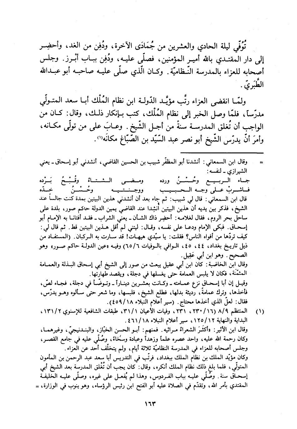 [1] المنتظم 9/ 8 (16/ 230، 231، وفيات الأعيان 1/ 31، طبقات الشافعية للإسنويّ 2/ 131، البداية والنهاية 12/ 125، سير أعلام النبلاء 18/ 461.