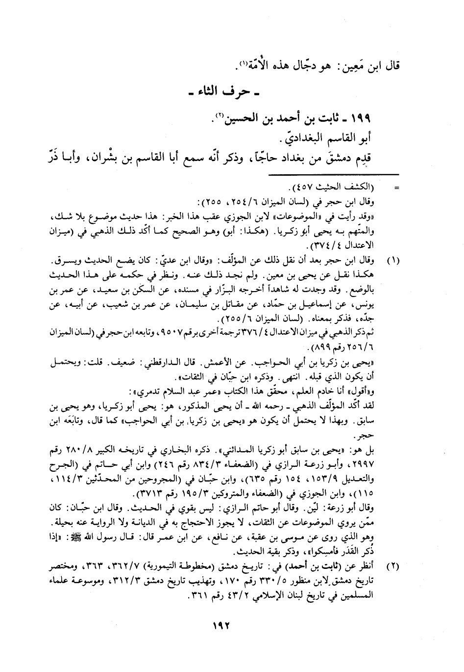[2] انظر عن (ثابت بن أحمد) في: تاريخ دمشق (مخطوطة التيمورية) 7/ 362، 363، ومختصر تاريخ دمشق لابن منظور 5/ 330 رقم 170، وتهذيب تاريخ دمشق 3/ 312، وموسوعة علماء المسلمين في تاريخ لبنان الإسلامي 2/ 43 رقم 361.