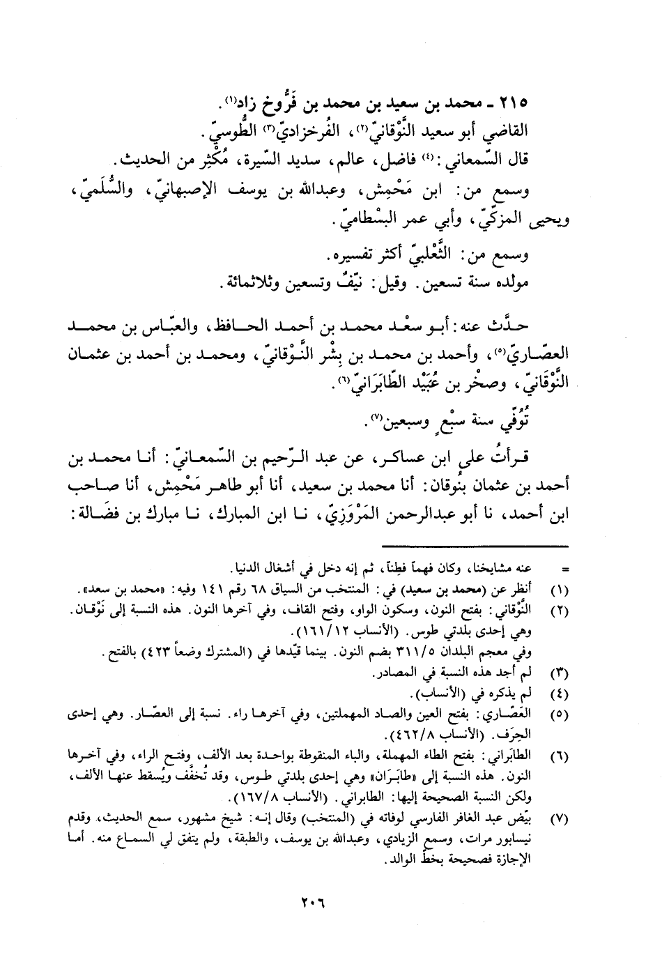[2] النوقاني: بفتح النون، وسكون الواو، وفتح القاف، وفي آخرها النون. هذه النسبة إلى نوقان.