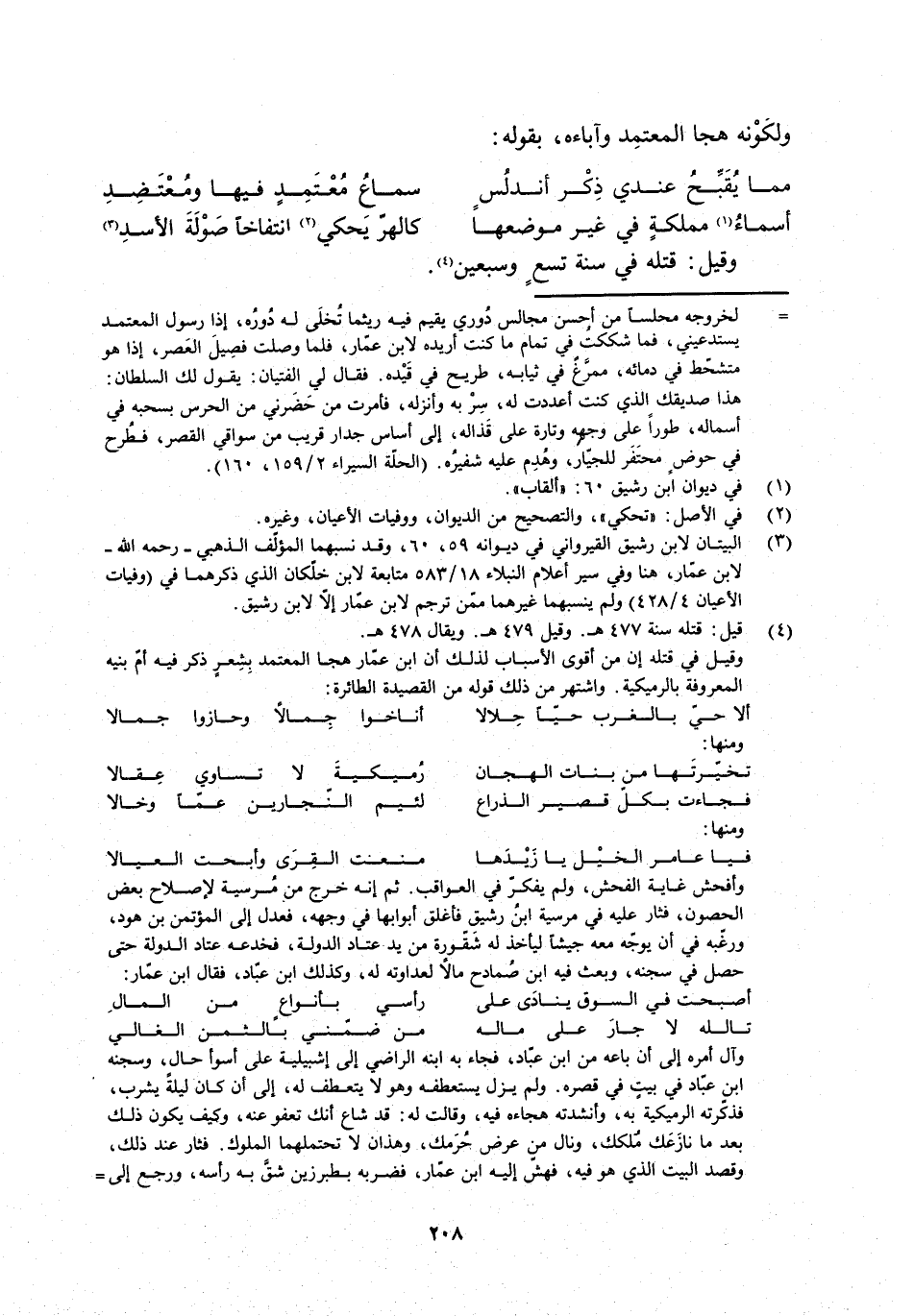 [3] البيتان لابن رشيق القيرواني في ديوانه 59، 60، وقد نسبهما المؤلف الذهبي- رحمه الله- لابن عمار، هنا وفي سير أعلام النبلاء 18/ 583 متابعة لابن خلكان الّذي ذكرهما في (وفيات الأعيان 4/ 428) ولم ينسبهما غيرهما ممّن ترجم لابن عمّار إلّا لابن رشيق.