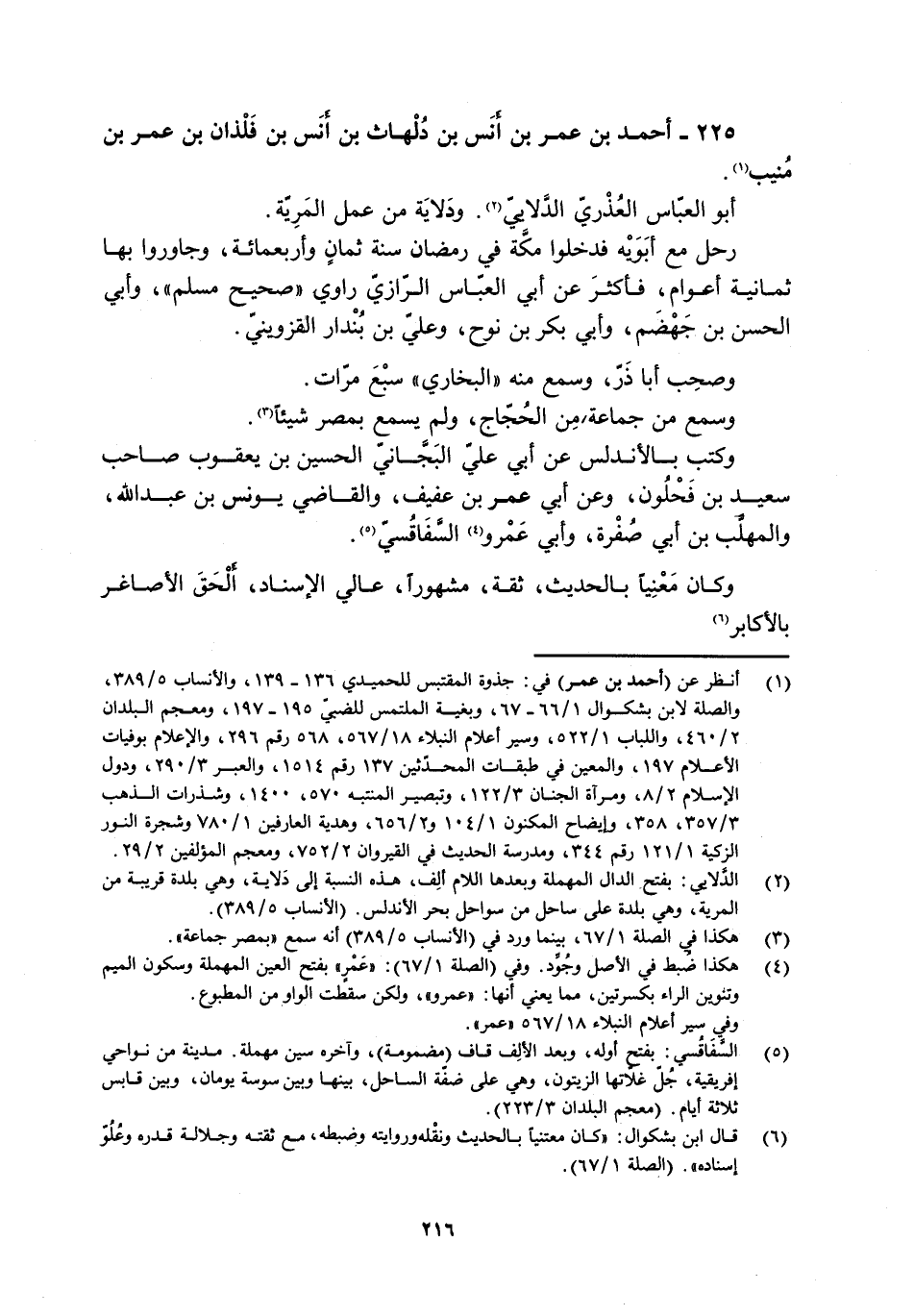 225- أحمد بن عَمْر بن أنّس بن دُلْهاث بن أنّس بن فَلْذان بن عَمْر بن منيب [1] .