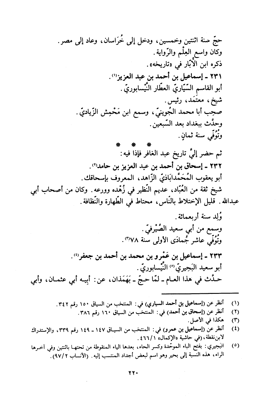 [1] انظر عن (إسماعيل بن أحمد السياري) في: المنتخب من السياق 150 رقم 342.