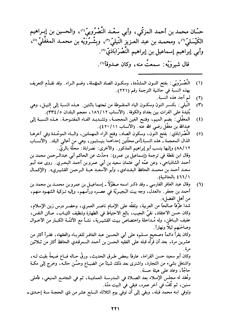 [1] النصرويي: بفتح النون المشدّدة، وسكون الصاد المهملة، وضم الراء. وقد تقدّم التعريف بهذه النسبة في حاشية الترجمة رقم (221) .