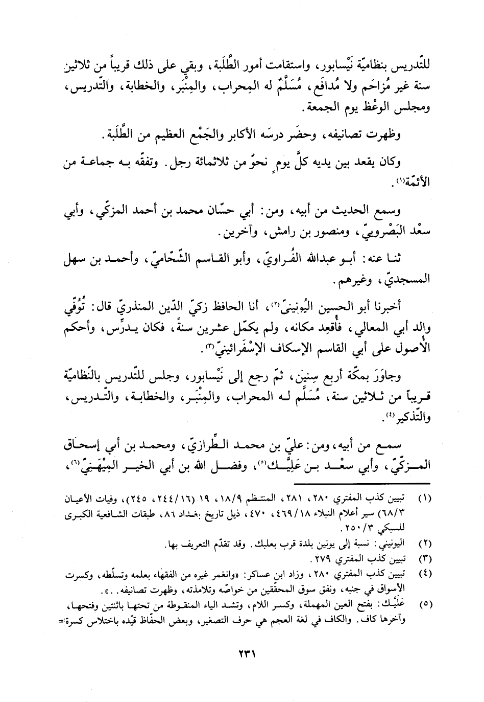 للتّدريس بنظاميّة نَيْسابور، واستقامت أمور الطَّلَبة، وبَقِيّ على ذلك قريبًا من ثلاثين سنة غير مُزاحَم ولا مُدافَع، مُسَلَّمٌ له المحراب، والمِنبر، والخطابة، والتّدريس، ومجلس الوعْظ يوم الجمعة.