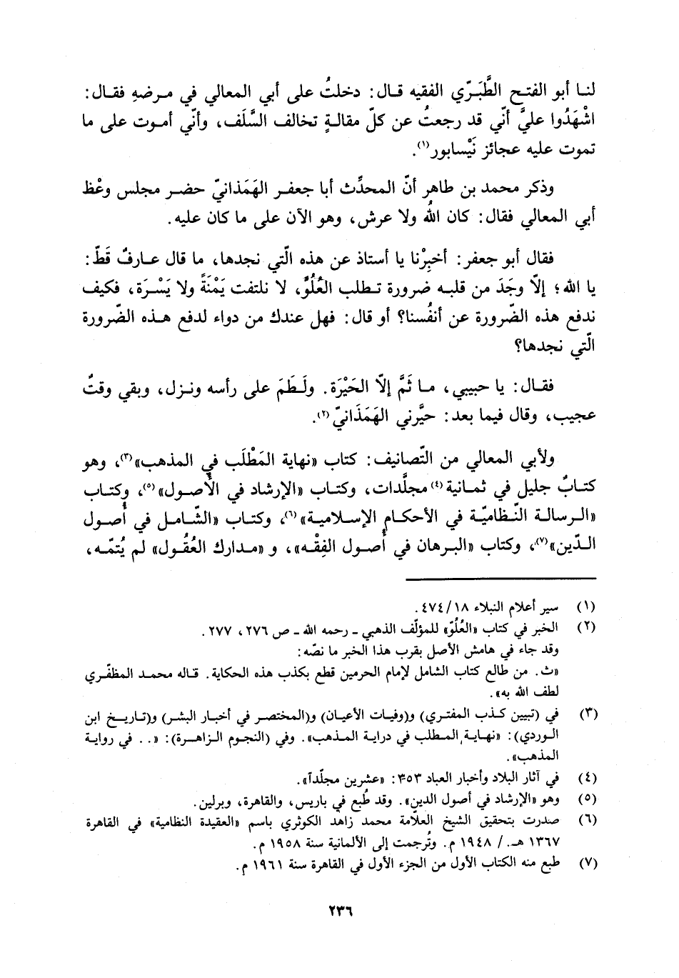 [3] في (تبيين كذب المفتري) و (وفيات الأعيان) و (المختصر في أخبار البشر) و (تاريخ ابن الوردي) : «نهاية المطلب في دراية المذهب» . وفي (النجوم الزاهرة) : « ... في رواية المذهب» .