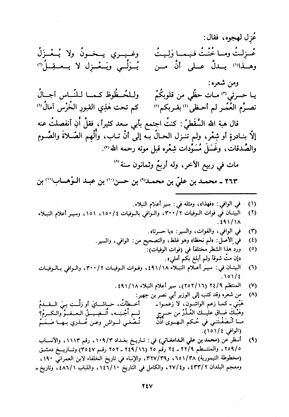 مات في ربيع الآخر، وَلَهُ أربعٌ وثمانون سنة [8] 263- مُحَمَّد بْن عَلِيّ بْن مُحَمَّد [9]